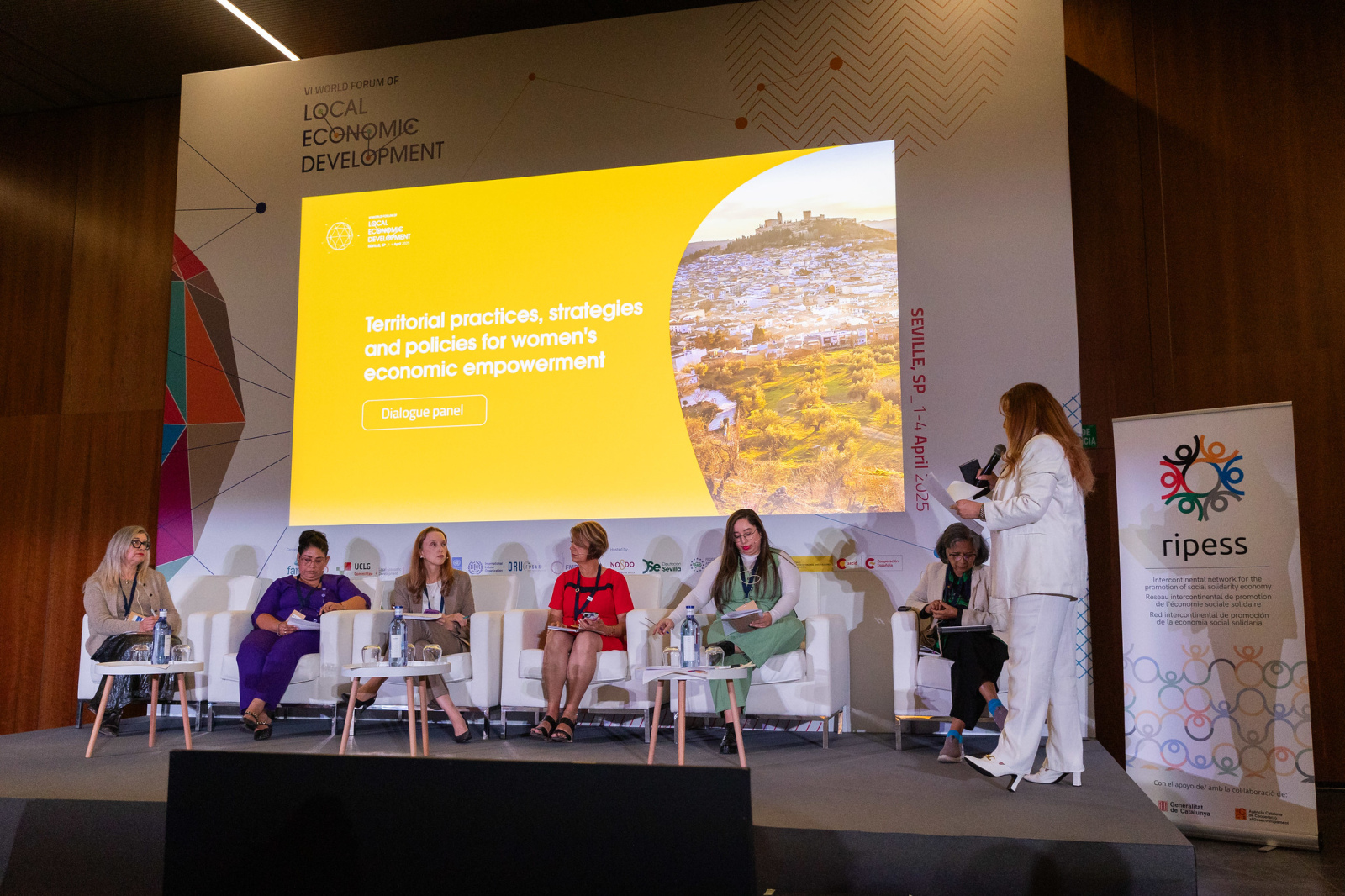 Participaron Rafael Llamas, presidente de la Red Española de Desarrollo Rural (REDR) y alcalde de Montilla; Flora Maboa Boltman, vicepresidenta de la Asociación Sudafricana de Gobiernos Locales; Rebecca Bligh, presidenta de la Federación de Municipalidades Canadienses; Julia da Motta, subsecretaria de Competitividad y Desarrollo Económico y Regional del Estado de São Paulo; y Rafael Escamilla Domínguez, presidente del Foro de Agencias de Desarrollo Regionales y director de relaciones exteriores del Instituto Valenciano de Competitividad Empresarial.